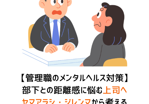 「部下との距離感がわからない」「注意すると関係が悪化しそうで怖い」「優しくすると統率が取れなくなる気 […] コミュニケーション ヘルスケア メンタルヘルス 【管理職のメンタルヘルス対策】部下との距離感に悩む上司へ|ヤマアラシ・ジレンマから考える職場の人間関係改善